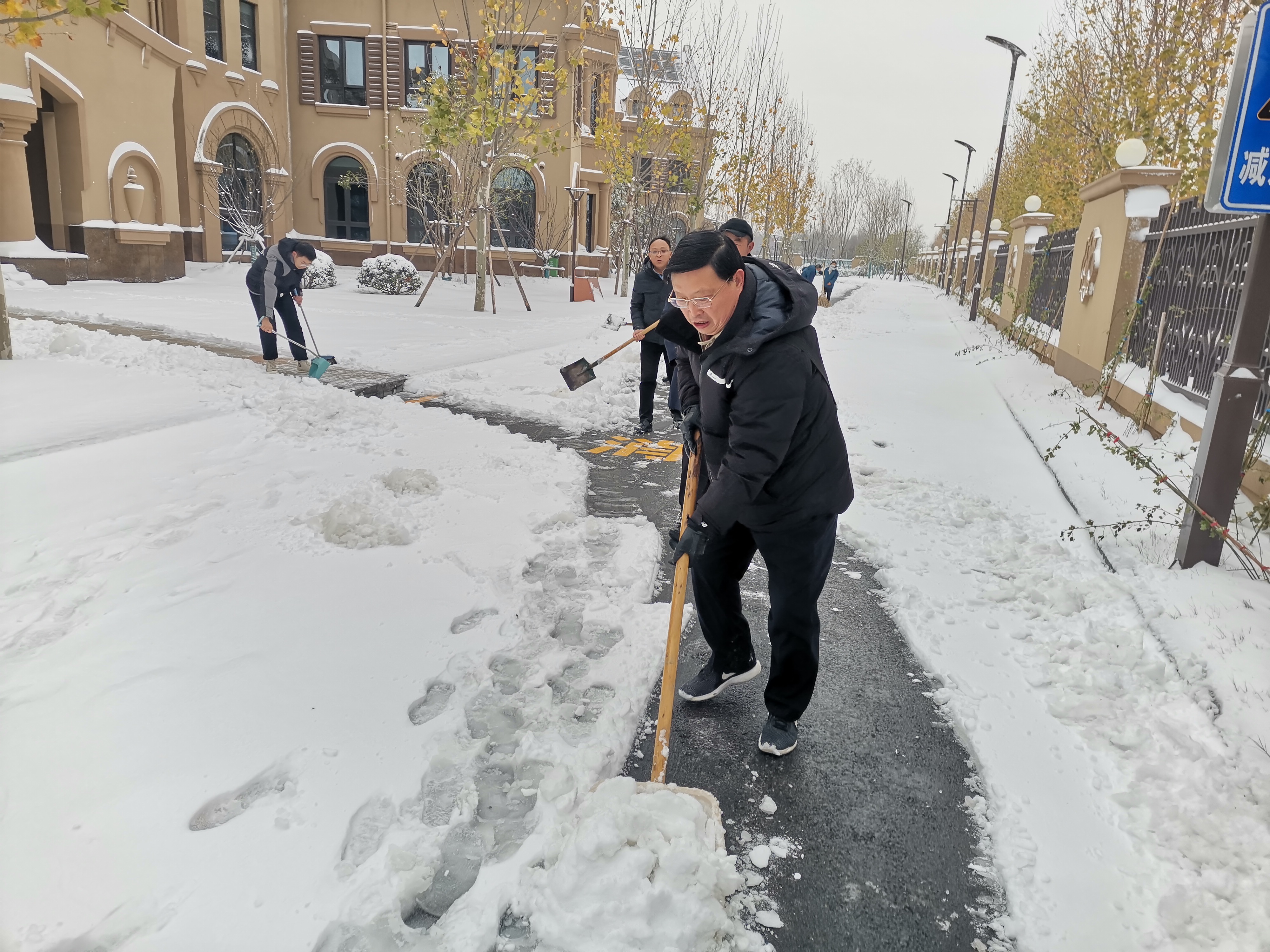 在清雪的过程中,不时有校领导、教职工、学生参与到清雪队伍中来,他们的加入使得清雪的效率提高了不少。