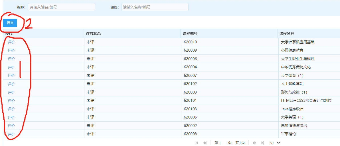 2.为在规定时间内完成评教工作将,将影响成绩查询和课程查询权限,请各位同学在规定时间内完成评教工作。