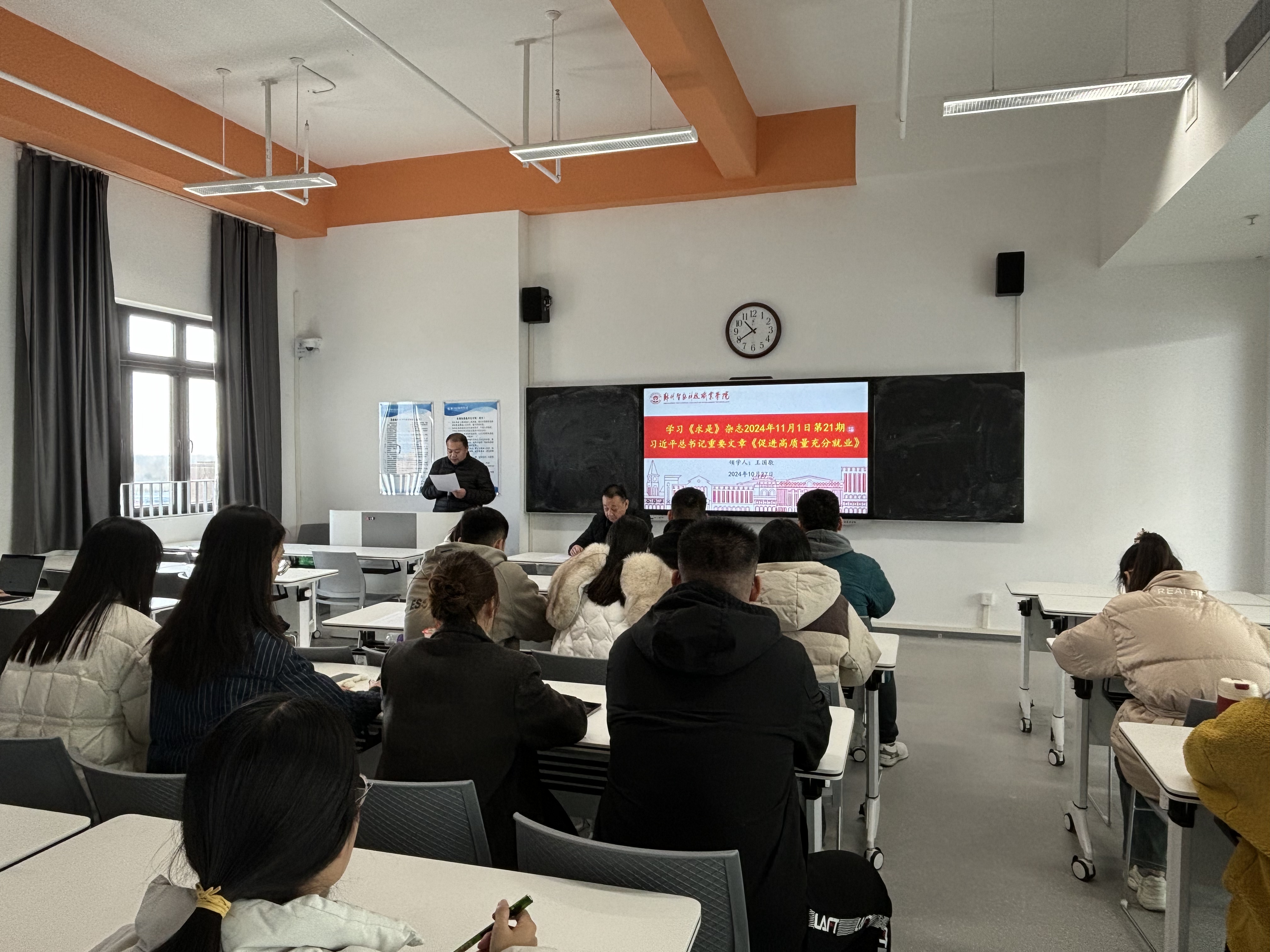学习会上,学院王国敬副院长领学了习近平同志《促进高质量就业》文章精神;党支部宣传委员岳亚辉领学了习近平总书记在全国宗教工作会议上的重要讲话精神。随后,与会党员和教师入党积极分子结合工作实际,进行了学习体会研讨交流。