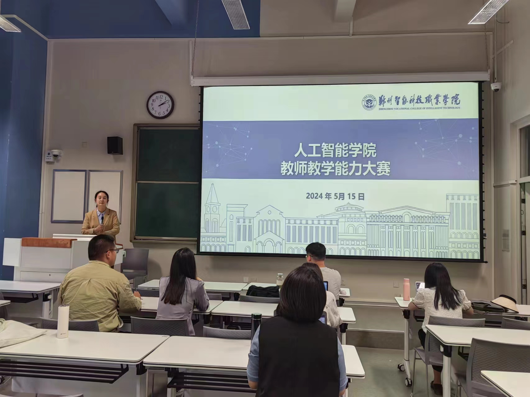本次比赛吸引了学院内共计6支教师队伍的热情参与,他们围绕“智能引领教育未来”的主题,展示了各自在课程设计、教学方法创新、人工智能技术融入课堂等方面的精彩实践与独到见解。比赛现场,参赛教师们借助虚拟现实、大数据分析、机器学习等前沿技术,为观众呈现了一场知识与智慧的盛宴,充分展现了人工智能时代教师的风采和创新能力。