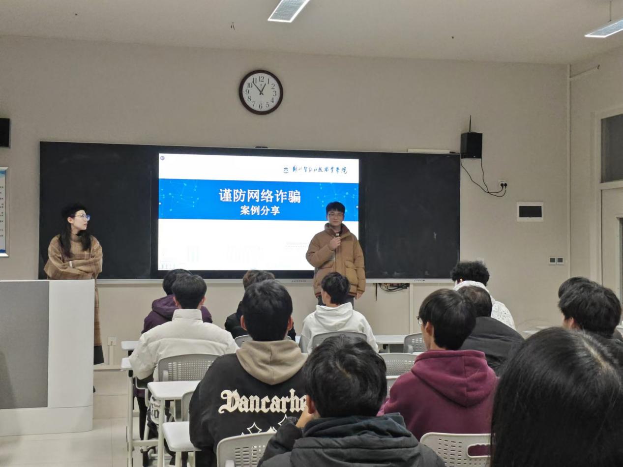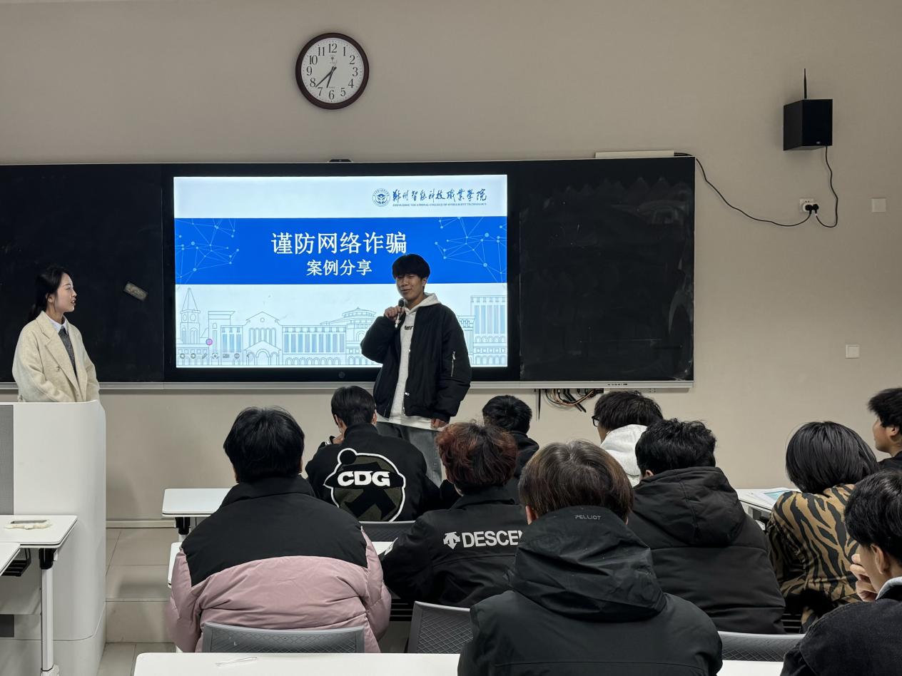 班会伊始,辅导员老师们通过生动的案例展示,从网络诈骗的常见形式,如虚假购物链接、网络交友诈骗以及个人信息泄露等常见问题,让学生们直观地感受到网络暴力对个人心理和生活造成的严重伤害,以及网络安全问题的严峻性。