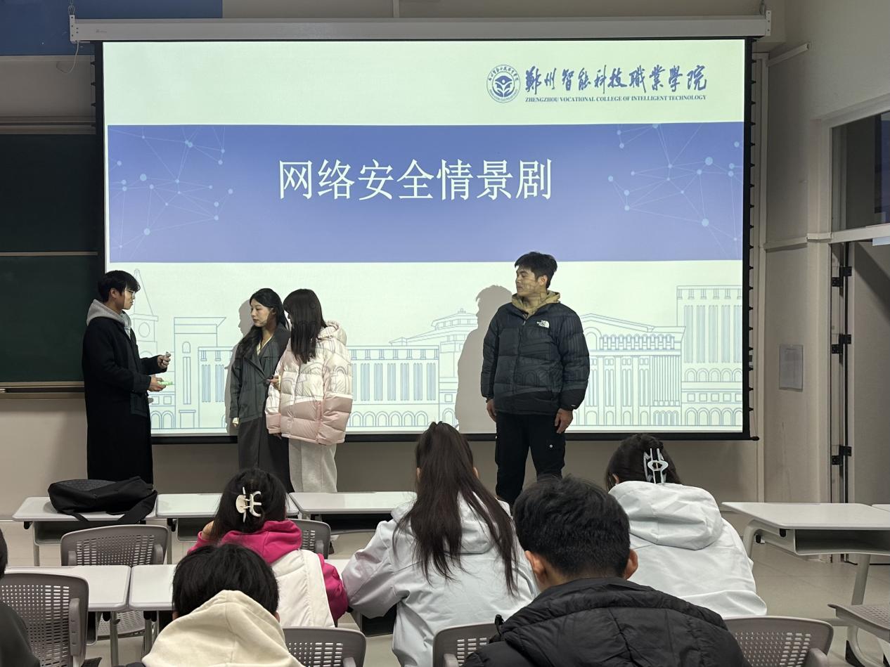 为了更直观的让同学们了解网络诈骗无孔不入,张唱唱老师还组织学生排练网络诈骗情景剧,表演结束后同学们们积极讨论,有的同学提到了个人信息泄露的问题,还有同学分享了应对网络欺凌的经验。现场气氛热烈,大家在交流中加深了对网络安全知识的认知。