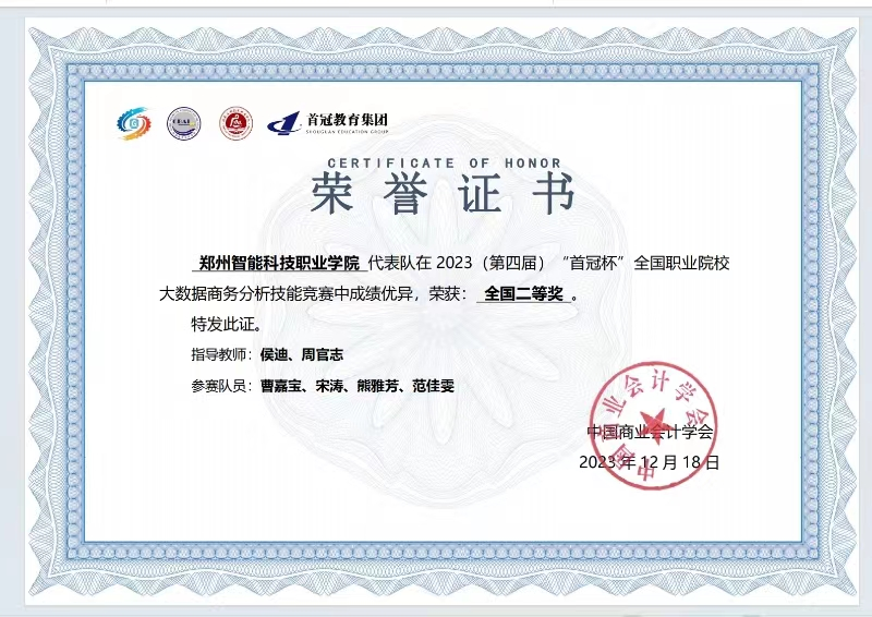 3.紧跟趋势,聚焦行业需求: 专业课程设置紧跟大数据和会计行业发展趋势,开设大数据技术应用基础、Python基础、财务数据分析等前沿课程,培养学生适应未来行业发展需求的能力。积极鼓励学生参加证书考试,并获得优异成绩。