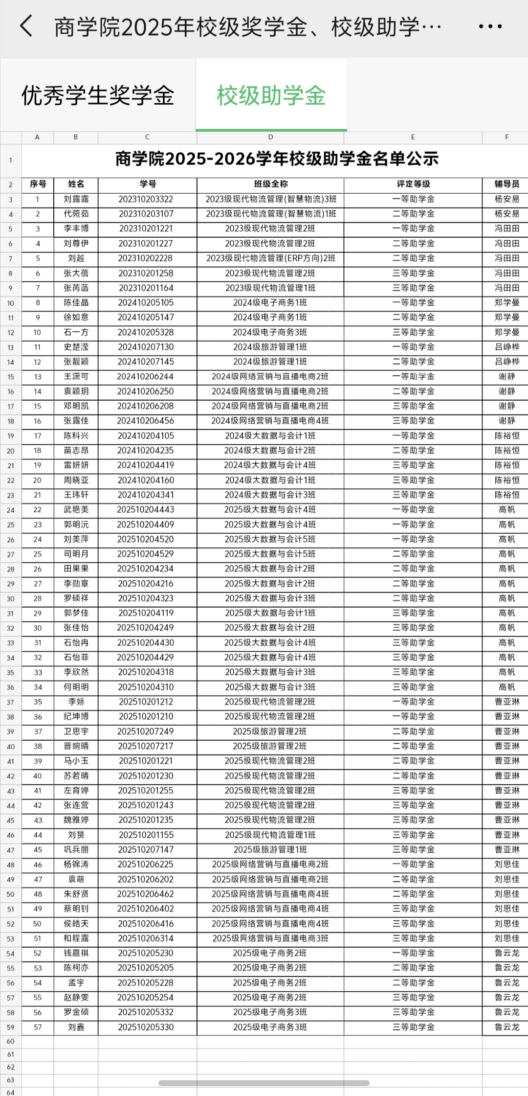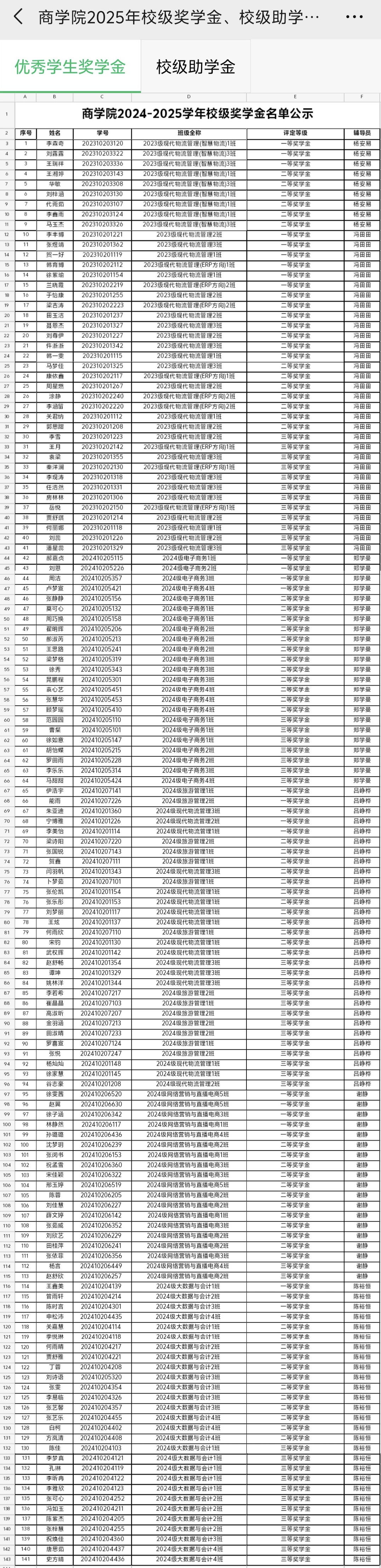 商学院2025年校级奖学金、校级助学金名单公示
