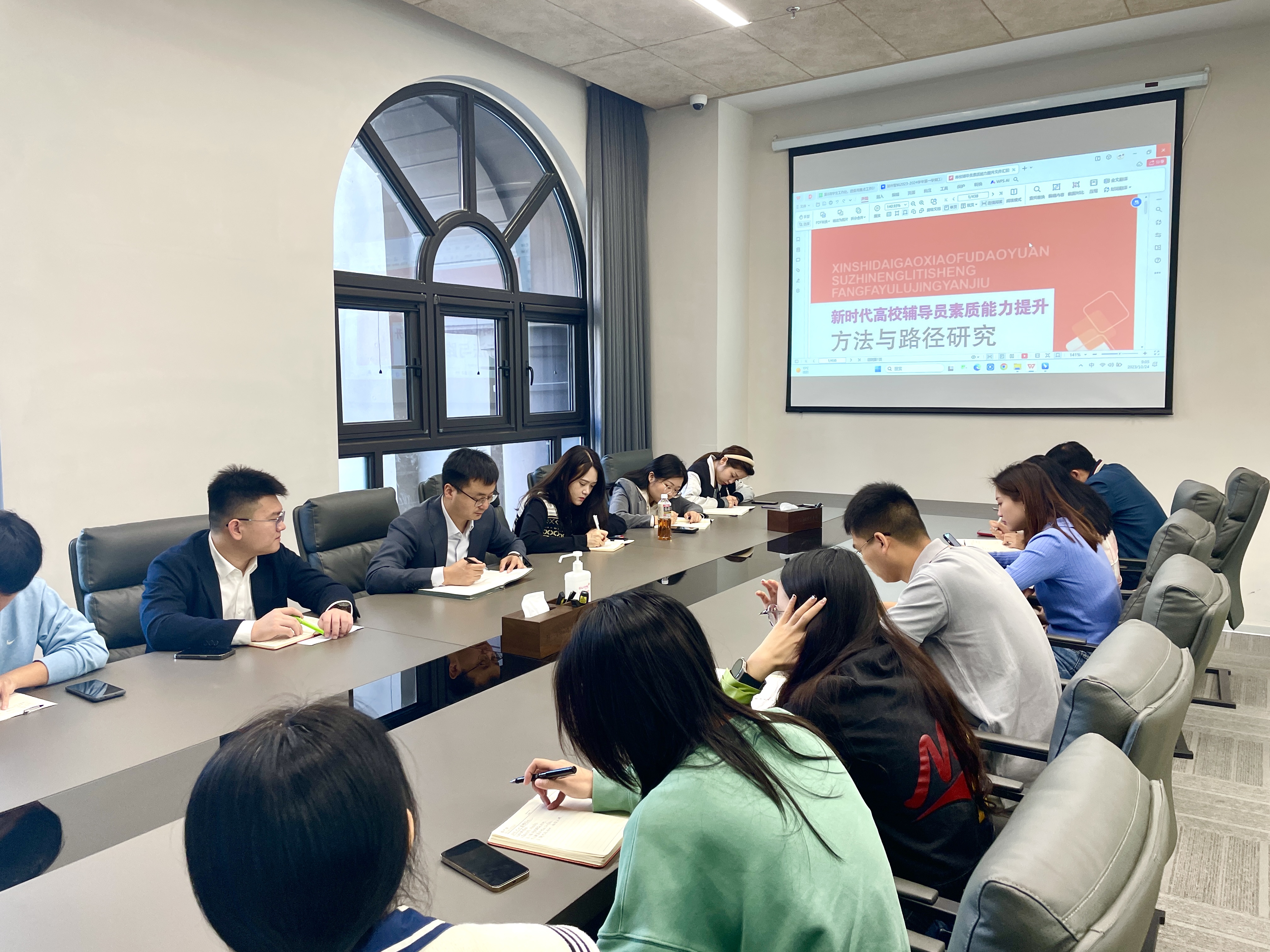 会议上,秦鹏分析了近年来赛制的变化以及大赛的考察重点,并围绕辅导员素质能力大赛的“案例研讨”和“谈心谈话”两个关键比赛环节的评分细则、注意事项进行指导,带领全体辅导员进行现场学习讨论。秦鹏强调,比赛前要提前准备、加强练习,比赛时要理清思路,准确分析问题。