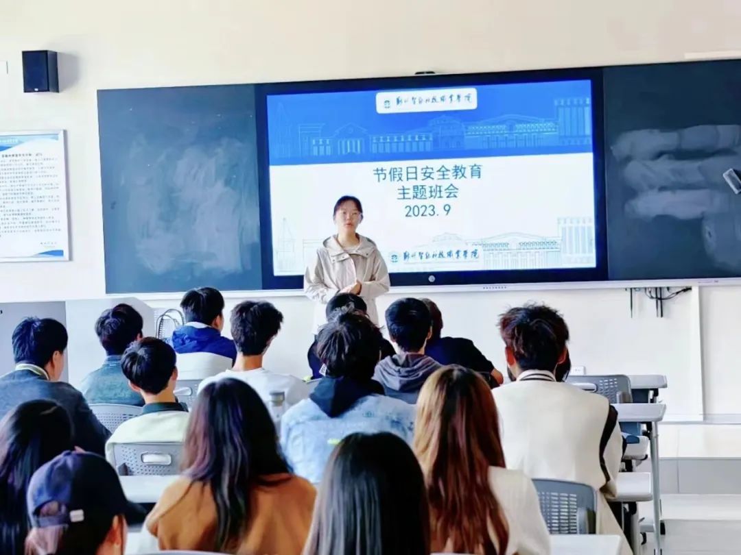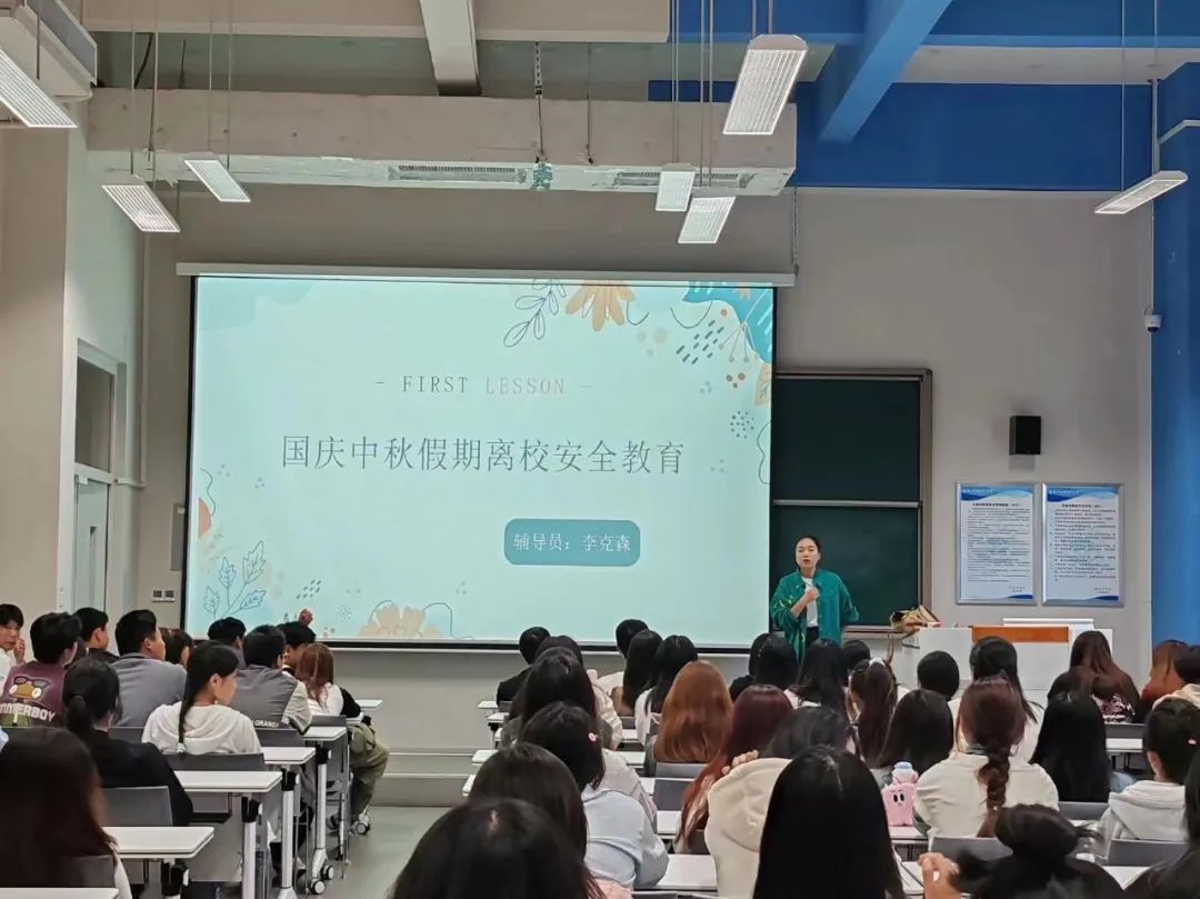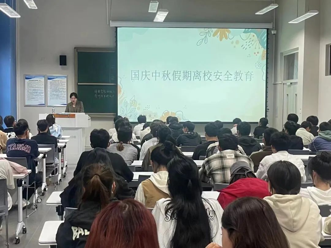 为切实做好中秋、国庆假期学生安全教育工作,增强节假日安全防范意识,强化学生宿舍安全管理,9月27日,学校各学院以班级为单位召开“中秋国庆假期安全教育”主题班会。会议中通报学校关于切实做好2023年中秋节国庆节学生安全教育与管理的通知,并就学生旅游、交通、消防、食品、防盗、防抢、防诈骗、防不良网贷等方面的安全教育进行引导,不断提升同学们的安全防范意识和自救能力。