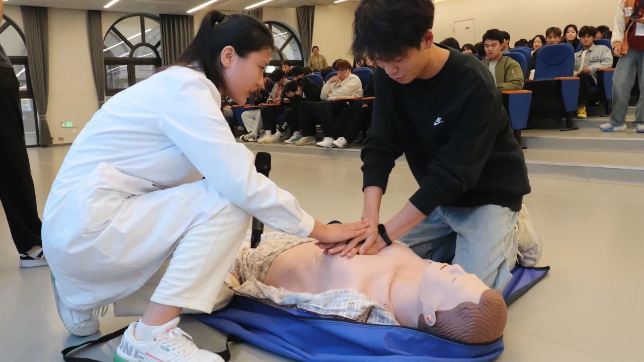 培训中,医务人员详细讲解急救基本原理、心肺复苏的正确操作技巧、人工呼吸要领等关键知识。现场还开展了心肺复苏实操演练,医务人员以橡胶人器具为模拟对象,演示正确的心肺按压和人工呼吸方式,并强调救助过程中需要注意的问题和经常出现的错误,同学们受益匪浅。