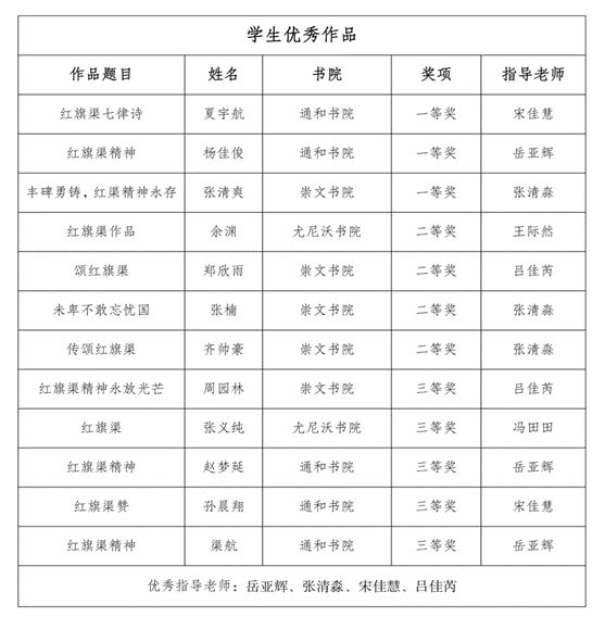 本次活动从多角度、多方面、多层次促进学生感悟红旗渠精神的内涵,坚定文化自信,牢记初心使命,将红旗渠精神铭记于心、融汇于行,争做有理想、敢担当、能吃苦、肯奋斗的新时代好青年。