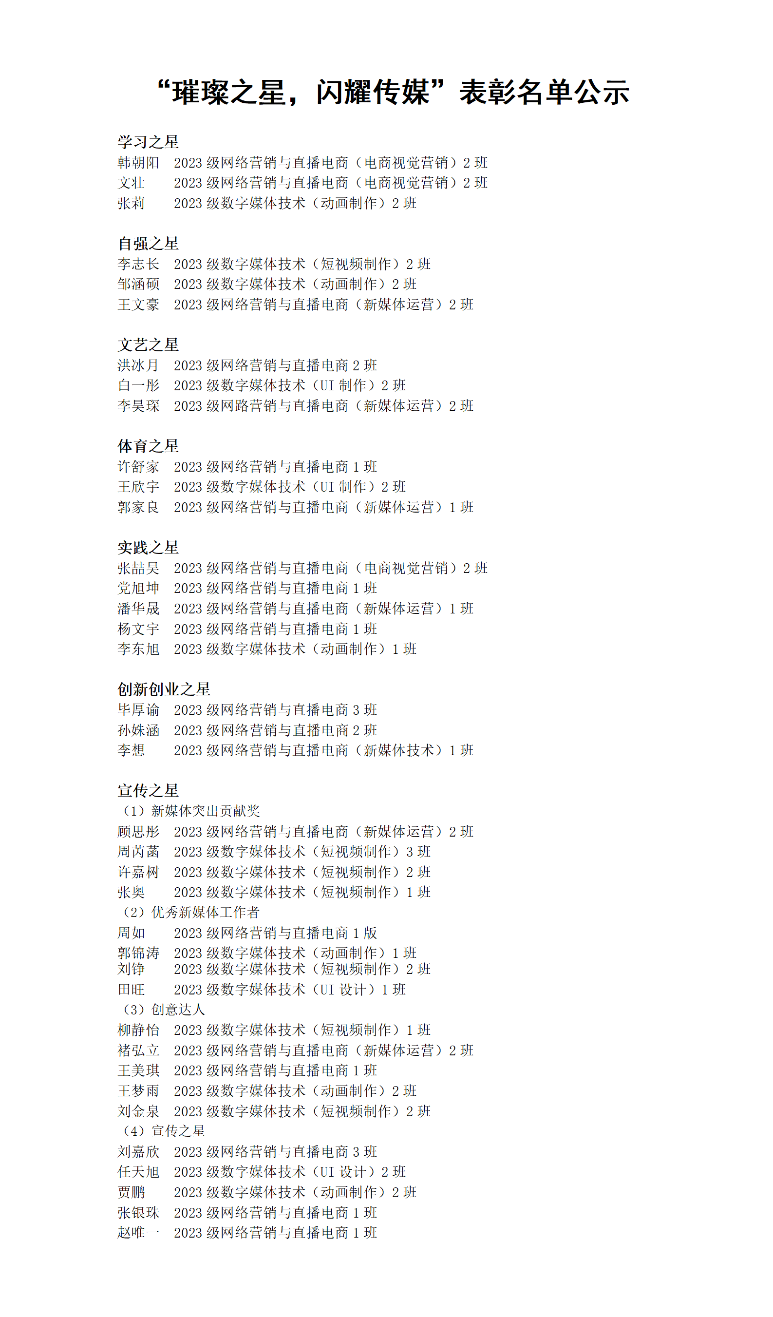 这次活动不仅表彰了在多元领域内表现优异的学生代表,更在学院内树立了一批积极向上的典范。这些榜样以实际行动诠释了传媒精神,为进一步推动传媒学院优良学风与院风的建设,培养具备专业素养与社会责任感的传媒人才奠定坚实基础。