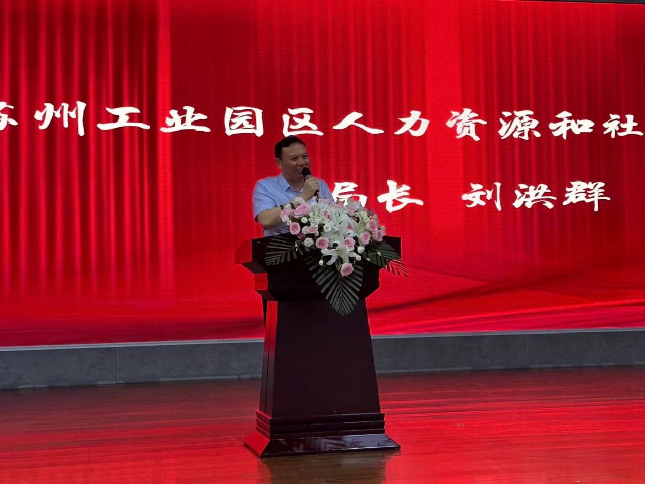 苏州工业园区人力资源和社会保障局副局长刘洪群致辞。刘洪群对参加此次签约的领导和参加开学典礼的全体师生表示衷心的感谢,并对苏州工业园区基本情况作了简要介绍。他表示,此次签约是双方合作的开始,希望双方能够校地优势互补,在体制机制、科技创新、人才培育、成果转化等方面深度融合,实现共赢,为民生福祉和经济社会发展作出贡献。