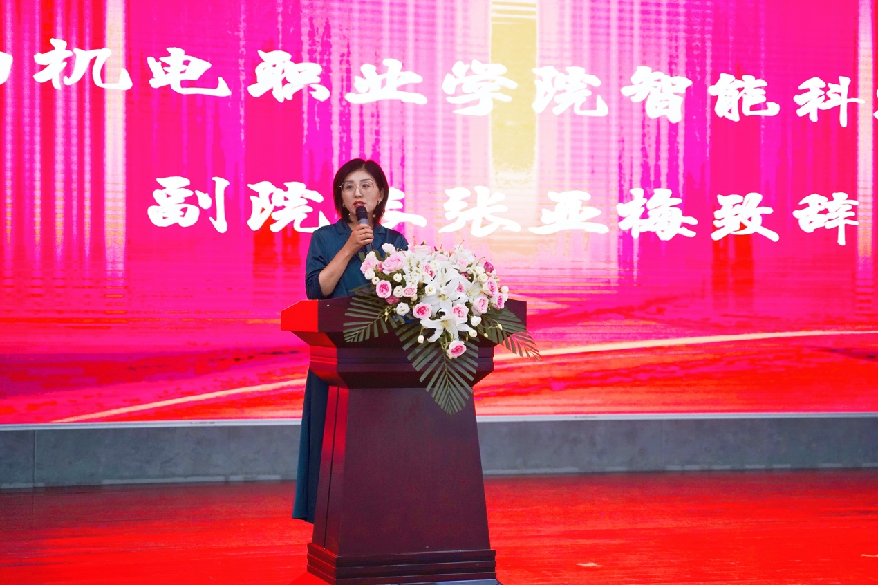 智能科技学院副院长张亚梅对学生提出勉励和希望,她表示,在产业学院,你们不仅可以学到丰富的专业知识,还将了解企业真实的工作环境、业务流程、岗位要求,感受不同的企业文化,进一步获得扎实的实操能力、管理能力和职业素养,提升自己未来的就业竞争力。请大家珍惜这段宝贵的时光,勇敢地面对社会现实,明确职业目标,坚守人生理想,认真学习,积极工作,张弛有度,劳逸结合,团结互助,共同进步。
