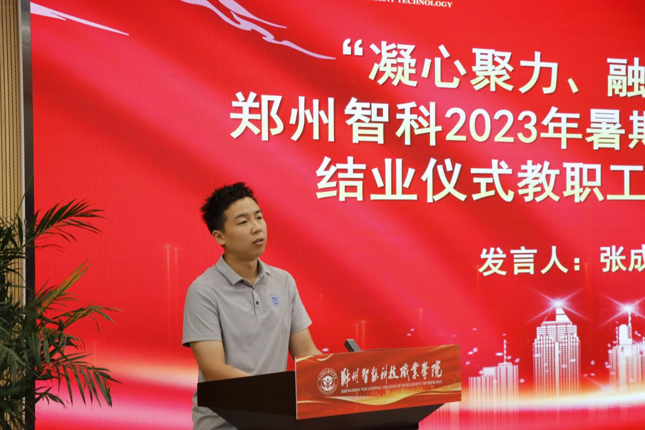 张保来副校长对结业仪式作总结讲话。他表示,这次培训是学校正式获得省政府批准、教育部备案、进入快速高质量发展新阶段后,举行的第一次全体教职工培训活动,其意义非同寻常。为此,他对全体学员提出了五点要求:一要以学增智,提高履职本领;二要以学正风,坚持自我革命;三要以学铸魂,加强团队建设;四要以学固严,严明工作纪律;五要以学促干,勇于担当作为。他勉励大家以这次学习培训为新的起点、新的动力,在校董事会的坚强领导下,进一步解放思想、改进作风,真抓实干、努力工作,不断开创学校各项事业新局面,续写郑州智科高质量发展新辉煌。