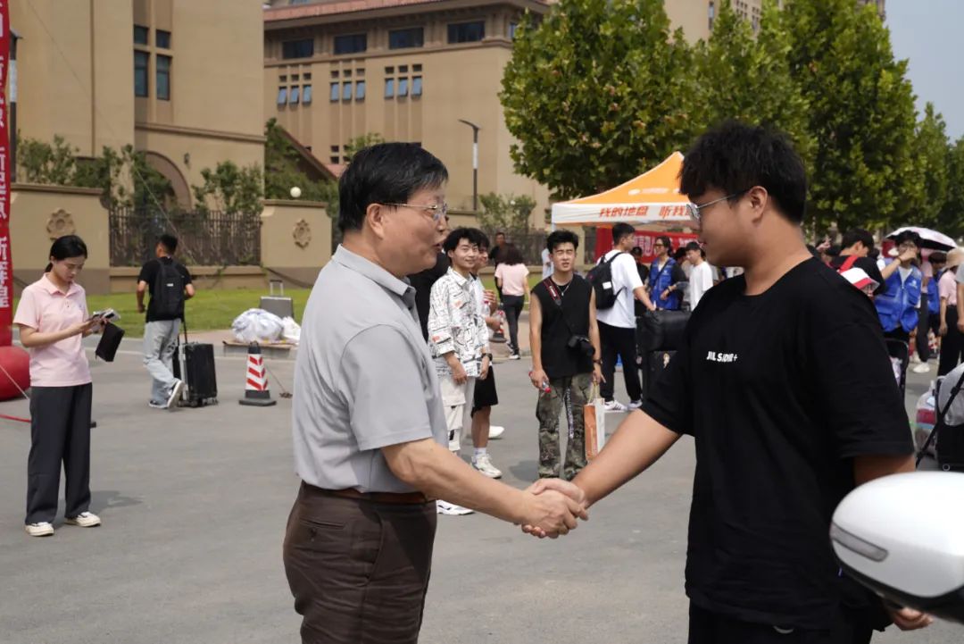 学校领导对迎新工作关怀备至,早上7点,学校领导一行就到达新生报到处了解新生报到和迎新工作情况,与新生亲切交谈,鼓励同学们珍惜韶华、不负青春、努力学习,为新生送去最温暖的关怀。董事长杨娜向志愿者们了解新生报到情况、检查各环节落实情况,与新生亲切交谈,勉励新生以最饱满的精神状态开启大学生活,为新生们加油鼓劲。