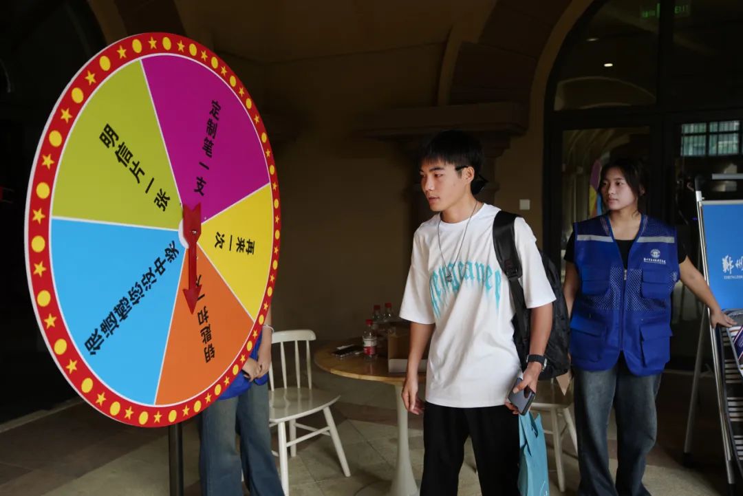 在新生报到处,不仅有签名墙还有传媒学院的传媒角的“开机(开学)仪式也别具一格,风格多样的kt板和拍照打卡点,满满的开学仪式感拉满!小萌新们个个面带笑容,闪亮出场~各学院精心布置了“小惊喜”——独具特色的拍照签名墙、充满惊喜的幸运转盘等;校园里丰富多彩、创意十足的打卡展板和横幅点亮了整个校园!每一处细节、每一个创意,都藏着学校师生的用心。