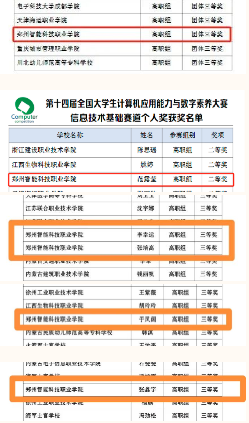 5月11至12日,第十四届“全国大学生计算机应用能力与数字素养大赛”落下帷幕。浦京人工智能学院2023级5名同学在田瑞敏、张方超老师的指导下,在比赛中脱颖而出,斩获多项荣誉。其中,范露莹同学荣获二等奖,张培高、李幸运、于凤阁、张鑫宇四位同学荣获三等奖,浦京荣获团体三等奖。