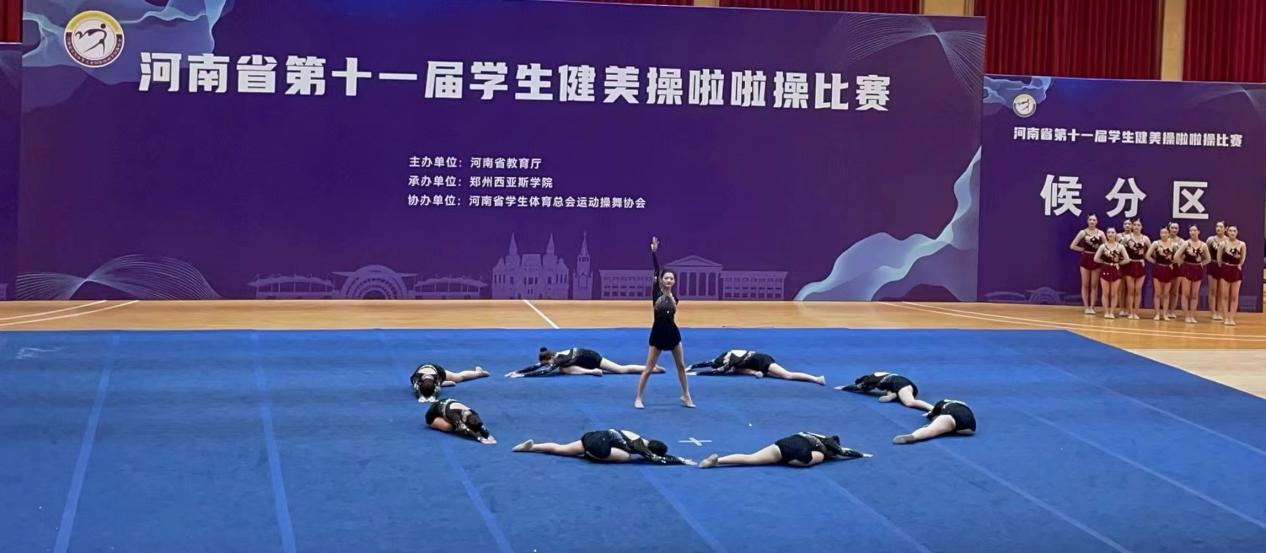 6月10日至6月14日,河南省第十一届健美操啦啦操比赛在郑州西亚斯学院举行。经过激烈角逐,王涵、冯婉婷等九名同学荣获大学专科甲组—小集体爵士第三名,张艺赢、熊雯娟荣获大学专科甲组—双人爵士第五名,张艺赢、杨雪荣获大学专科甲组—双人街舞第六名。