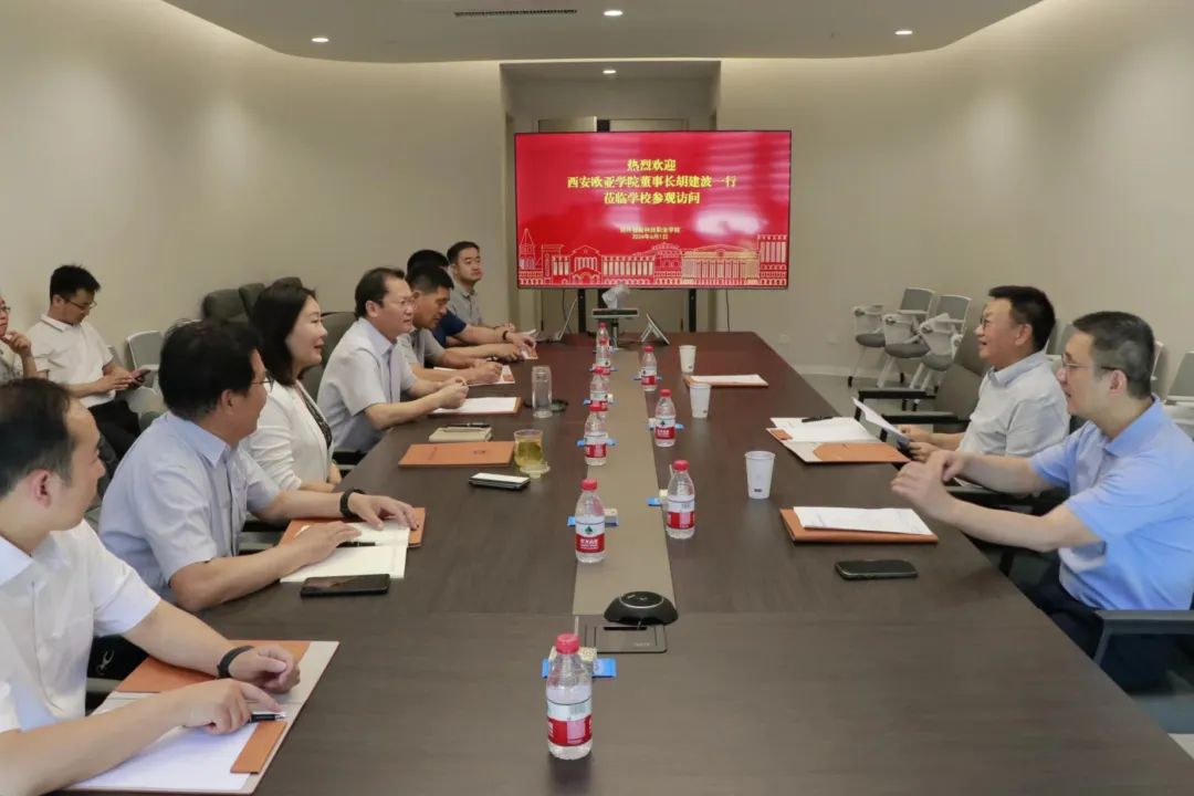 6月1日,西安欧亚学院董事长胡建波、党委副书记张军宏、教育创新研究院副院长赵健一行来浦京考察交流。学校董事长杨娜、校长王广国和副校长张保来、谷启涛、韩万兵及其他相关部门负责人陪同参观。