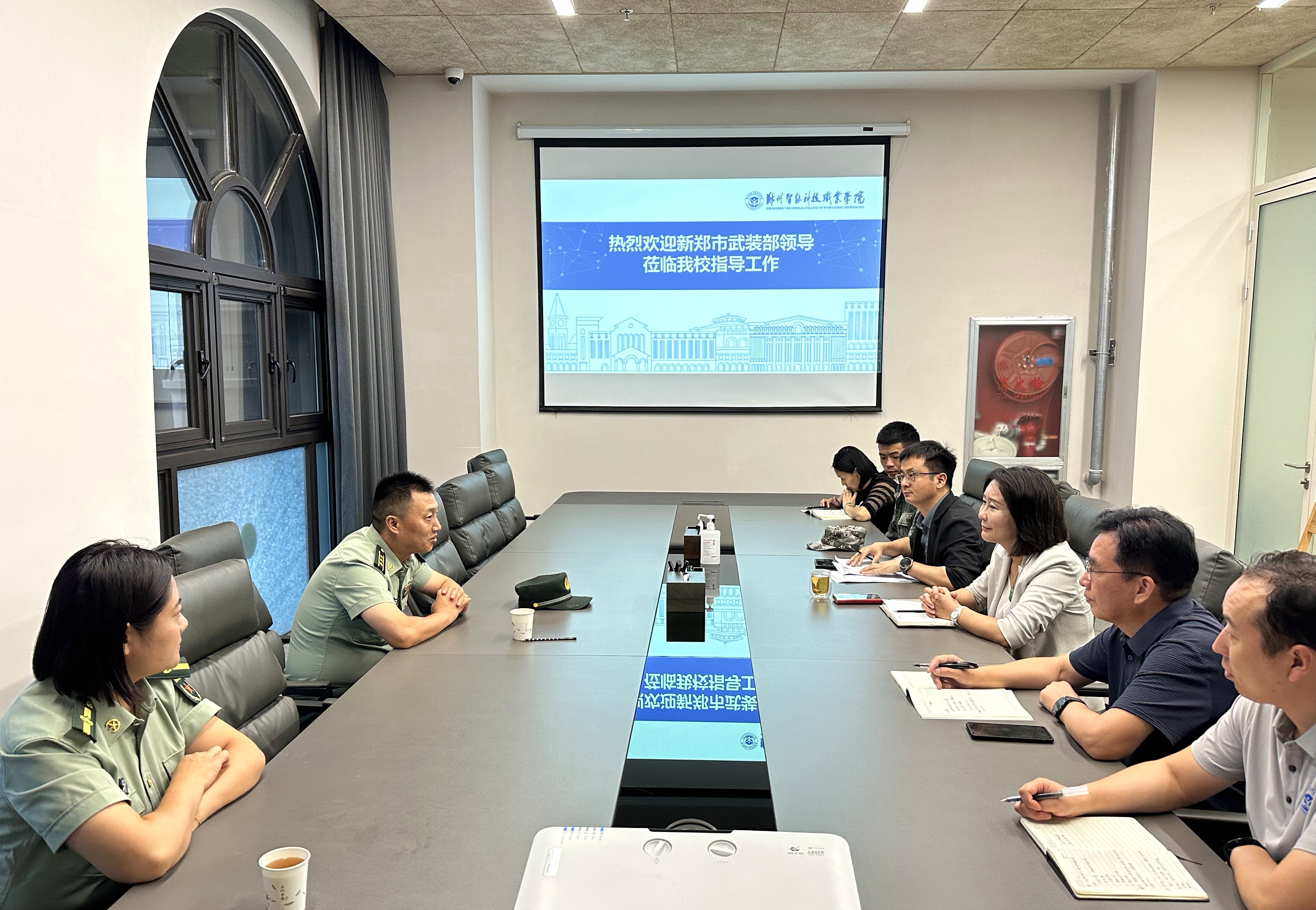 董事长杨娜、副校长张保来、韩万兵以及学校职能部门负责人陪同参加,董事长杨娜就办学特色、专业建设、武装部筹建等工作作了简要介绍,做好机制体制建设。